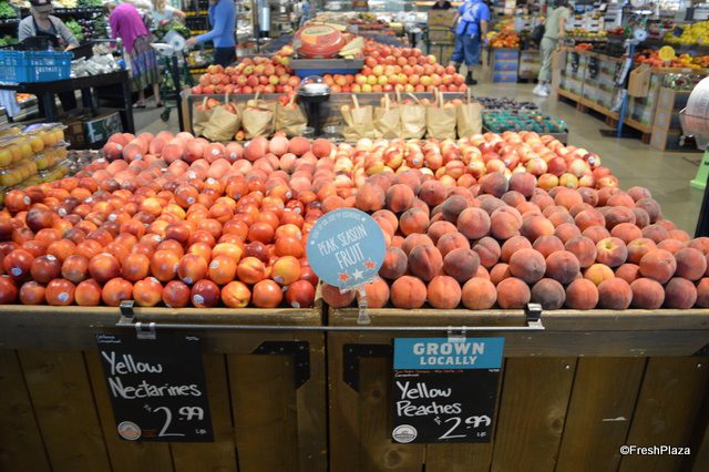 Conventional nectarines and peaches. Peaches are sourced from Twin Peaks Enterprises, just a few miles from the store.