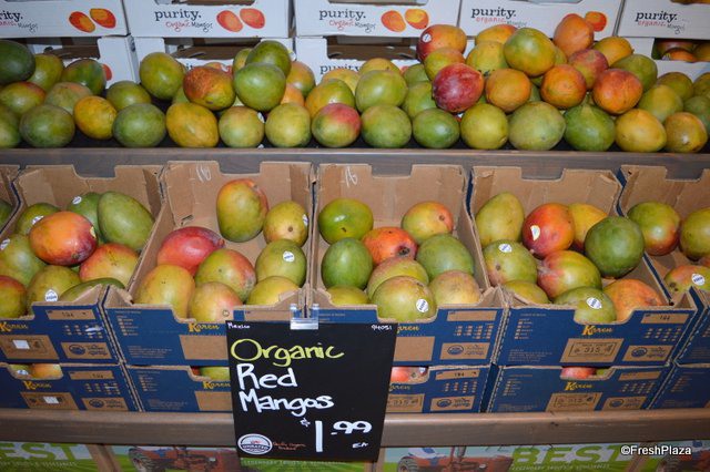 Organic red mangos from Pacific Organice Produce, sourced in Mexico.