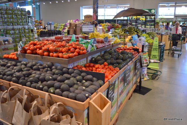 Avocados and tomatoes on display