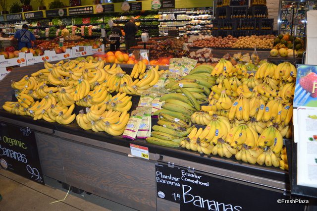 The customer can choose between organic and conventional bananas.