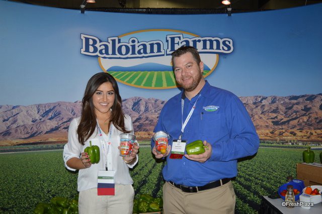Sierra Lopes and Richard Cowden from Baloian Farms. Baloian is a leading bell pepper producer on the West Coast, but launched its sweet mini peppers at the show.