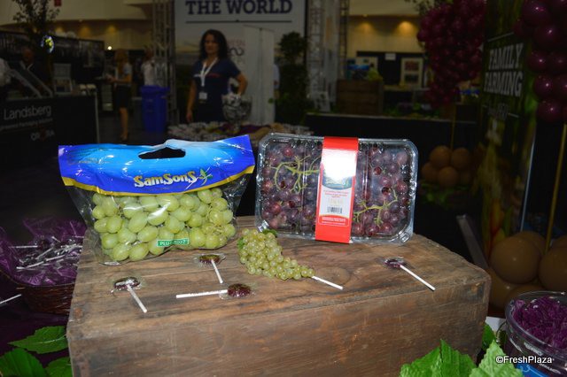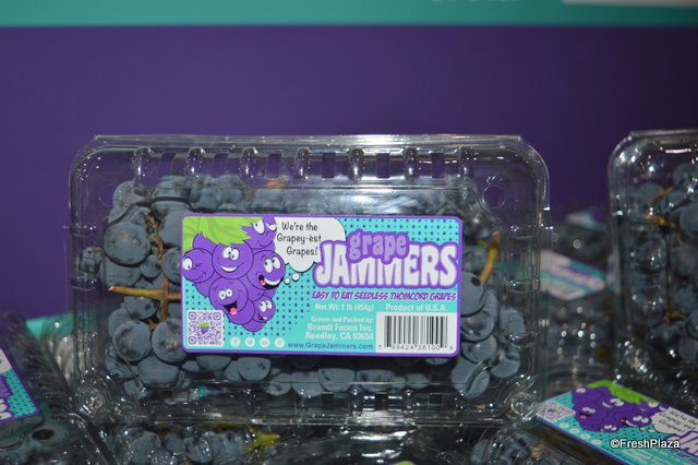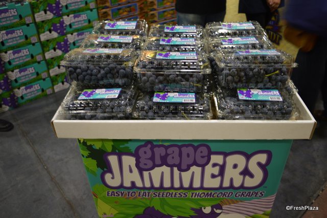 Launched at the show, grape jammers. The grape jammers are a cross between a Thompson seedless grape and a Concord grape.