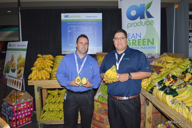 Sean Tharp and Sergio Garcia with OK Produce. The company has its own banana ripening chambers and has a papaya (ripening) program as well.