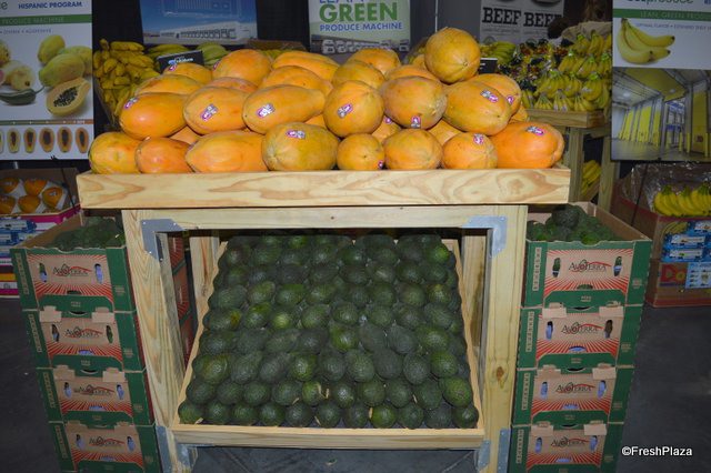 Papayas and avocados on display in the OK Produce booth.