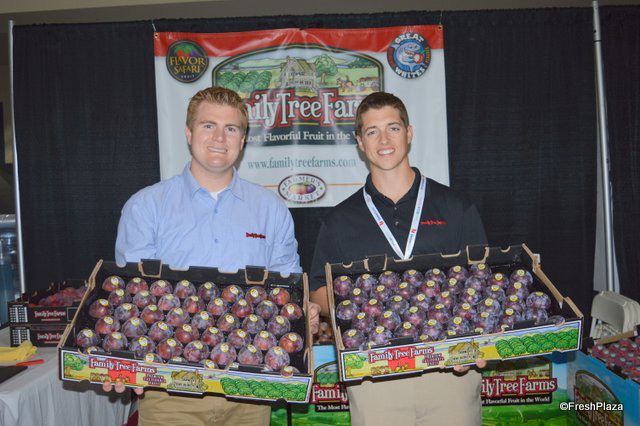 Brenton Helm and Parker Anderson with Family Tree Farms, showing plumcots and apriums, which are at peak volume at the moment.