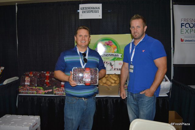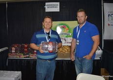 Jonathan Wittus and Jason Day with Kirschenman Enterprises, proudly showing a 4 lb clamshell with grapes.