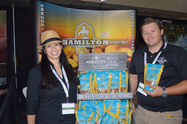 Adrien Huston and Blake Houston with Hamilton Ranches who specializes in pecans. The company processes about 50% of all pecans grown in California.