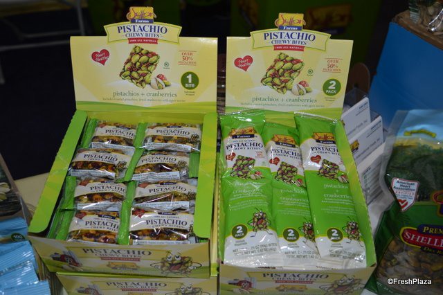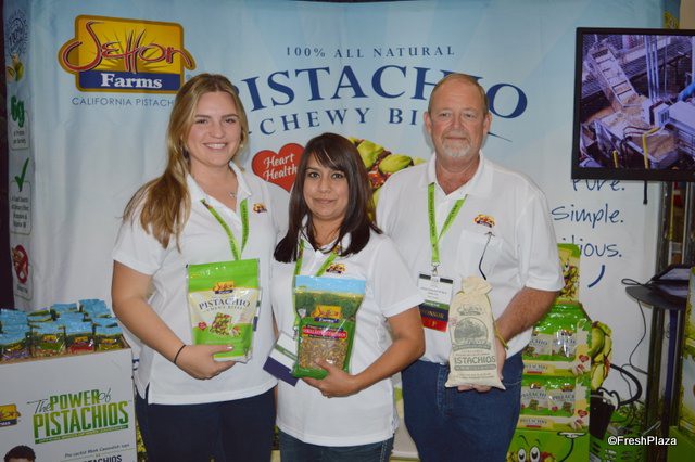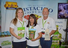 Madeleine Stanley, Jessica Tellez and Mike Smith with Setton Farms. The company specializes in pistachios. At the show, Setton launched its pistachio-cranberry bars.