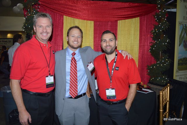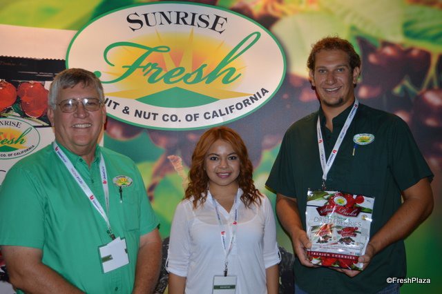 Jim Samuel, Jessica Becerril and Jake Samuel from Sunrise Fresh proudly showing a new product: dried cherries.