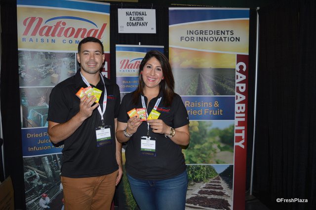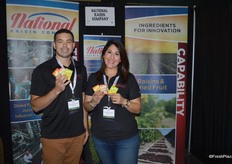 Robert Jones and Kimberley Bedrosian with National Raisin Company. The company specializes in dried fruit and promoted its Raisels at the show.