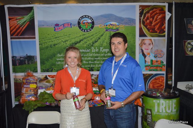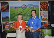 Rae Danell and Michael Antongiovianni with Grimmway Farms showing True oranic juice. It was a popular item by trade show attendees.