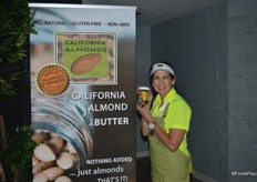 Di Quaresma proudly showing California almond butter.