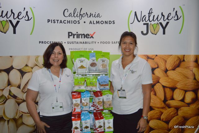Deborah Loyd and Leilani Talty with Nature's Joy, showing different (flavored) pistachio and almond products.