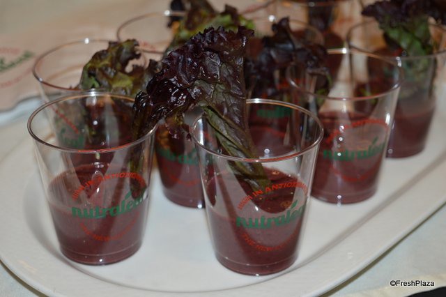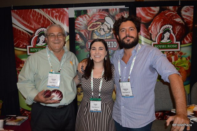 Dennis Donohue, Emily Lyons and Federico Boscolo with Royal Rose. Radicchio juices and radicchio pizza were available for attendees to try.
