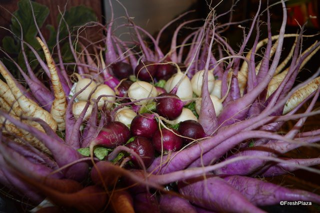 Brand new and launched at the PMA Foodservice show: purple Ninja radish from Babe Farms.