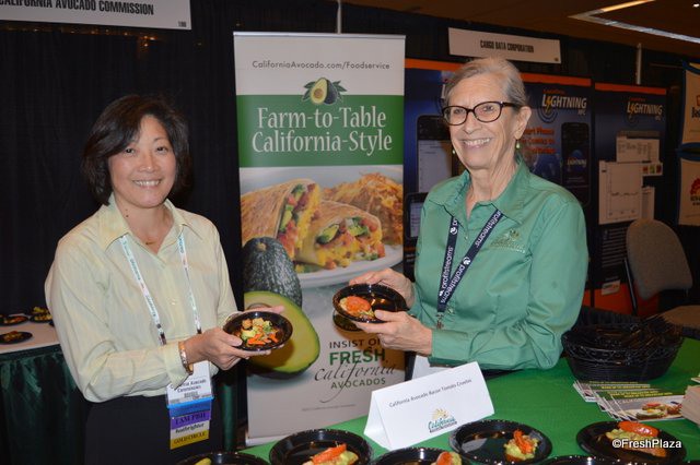 Kim Kurata and Ann Segerstrom with the California Avocado Commission, showing some avocado dishes for attendees to try.
