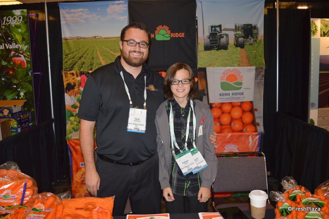 Chris Smotherman with his son Cameron Smotherman, showing carrots and representing Kern Ridge Growers.