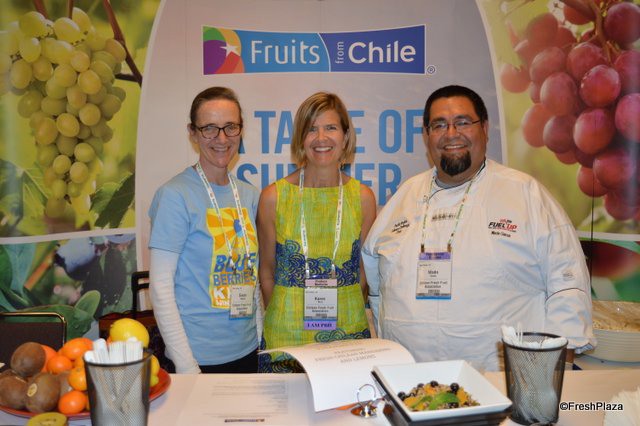 Susan Hughes, Karen Brux and Chef Wade Garza with Fruits from Chile. Their refreshing lemon juice was a popular item by show attendees.
