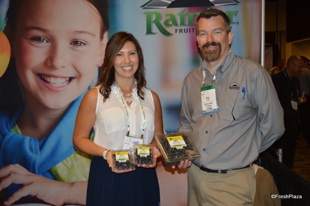 Erin Smith and Ron Conrad with Rainier Fruit Company, showing organic blueberries.