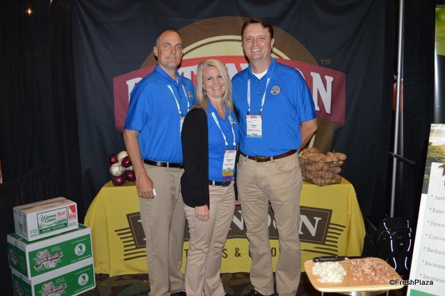 Travis Hess, Stephanie Bench and Jamey Higham with Potandon Produce.