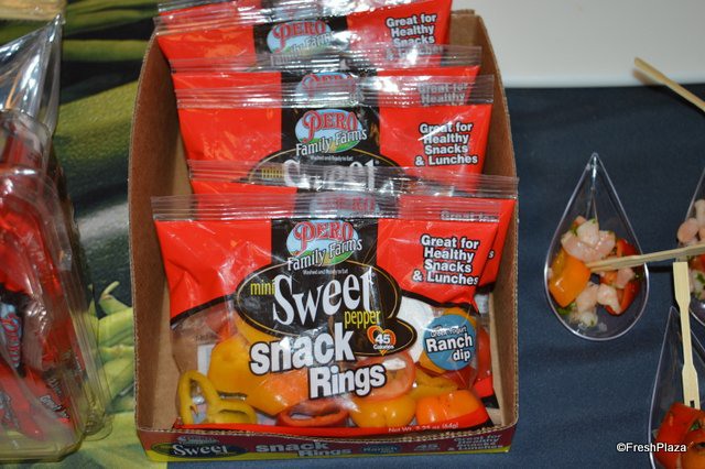 Launched four weeks ago: mini sweet pepper snack rings with ranch dip from Pero Family Farms.