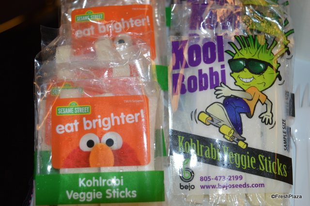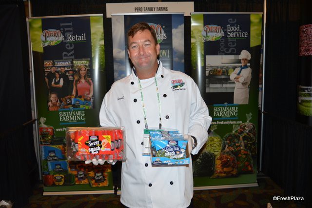 Scott Seddon with Pero Family Farms proudly shows his new mini sweet pepper snack rings as well as green bean snack snips.