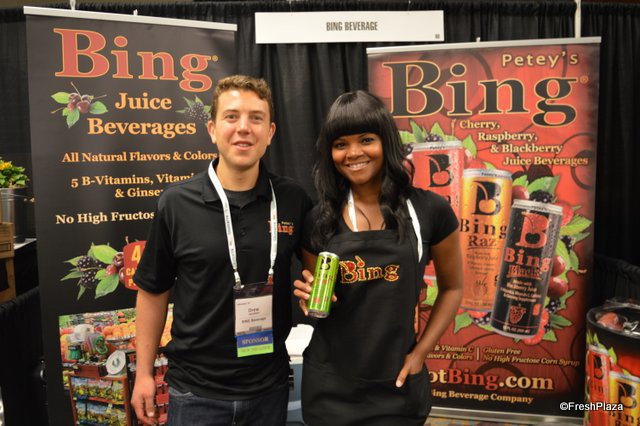 Drew Jacobson and Aziza Washington with Bing Beverage, showing Bing Crisp (combination of apple and cherry juice) that came out this month. It's the company's 4th juice variety.