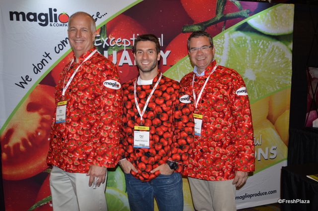 Chris Warosh, Paul Maglio and Paul Schulz with Maglio Produce. Easy to tell that tomatoes are the company's most important product.