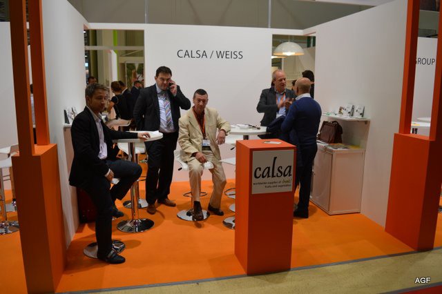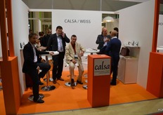 Calsa/Weiss, fruit and veg importer and exporter. Left Xavi Rosell, Spanish supplier to Calsa, Joost Priem, Vladimir and Pol Dendauw talking to a client.