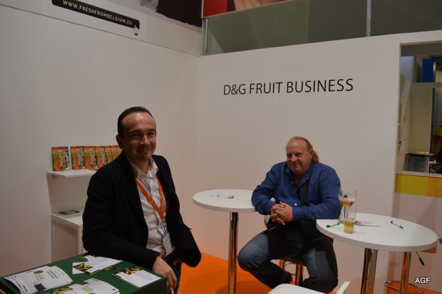 Bas Habets and Stefaan Devos of Devos Group. Devos Group is a top fruit specialist, and has a cultivation area of 130 ha, own cooling for 8000 tonnes, and 2 modern sorting lines.
