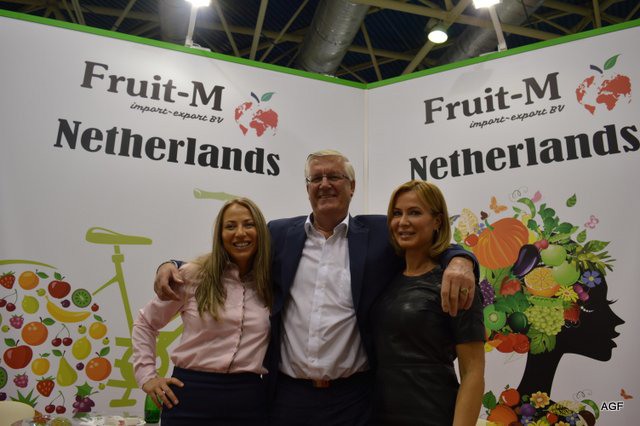 Fruit-M from Maasdijk. Left Laura Slektaviciute, Nicolaas Slagter, import manager of retailer Lenta from St Petersburg, and Svetlana Belskaia.