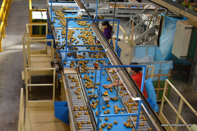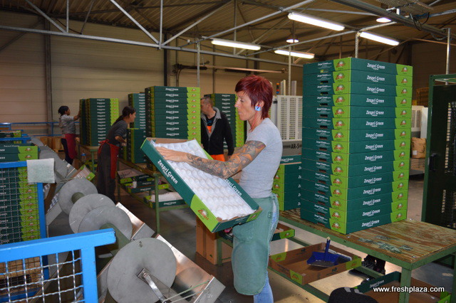 Here the ladies make sure that every kiwi is in its place on the tray.