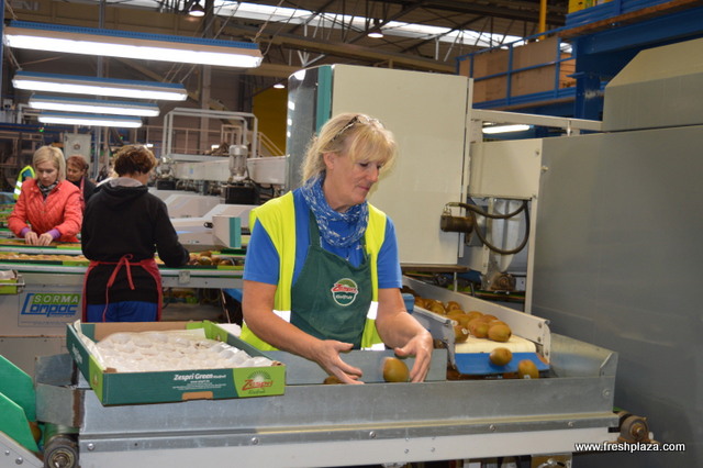 here the kiwis are packed into trays of six, this lady ensures that they positioned neatly in the trays.