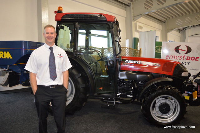 David Bush from Ernest Doe with the Case iH Quantum 95F, the tractor are designed for different purposes within fruit growing, this can be different widths for the different fruit. The F in the name is fruit and other types of tractors have a V in the name for vineyard.