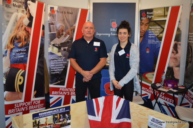 Tony Burt and Jessica Bundock at The Royal british Legion stand, the organisation as well as being a charity for the British armed forces also manufactures wooden bins for the fruit industry, they made 6000 so far this year.
