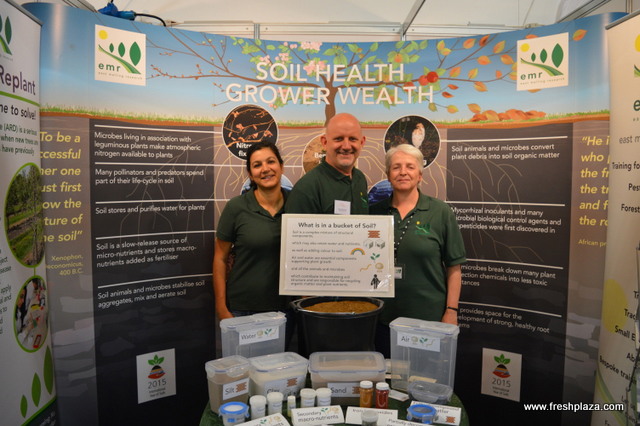 John Keyte, Abbey van der Merwe and Tom Robertson at the YARA stand.