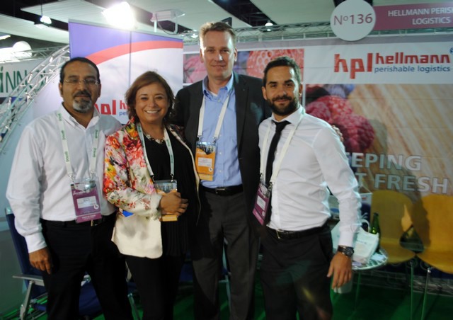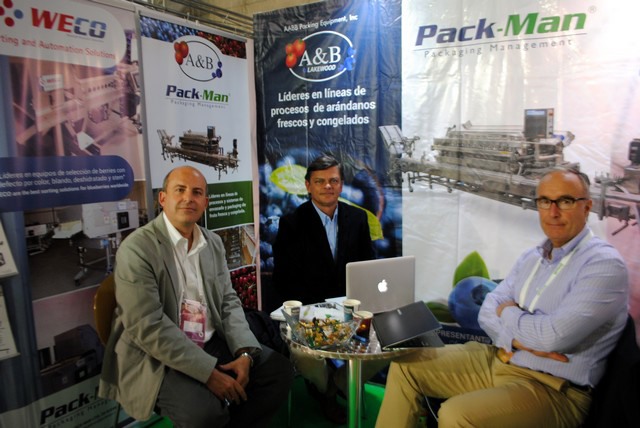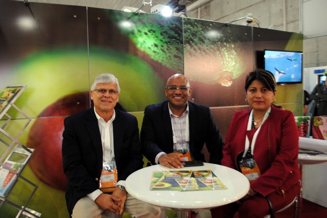 Carlos Zamorano Macchiavello from both Provid and the Peruvian Asparagus & Vegetables Institute, Arturo Medina Castro and Leylha Rebaza García from Provid, at the Peruvian booth.
