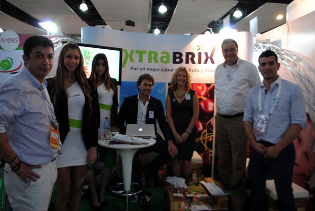 XtraBrix - presenting their product, which is a biostimulant, brix increasing and root improvement. Pablo Henriquez, the promotion ladies, Jacques Luteijn, Carolien Vervaet, Geert Bakker and Pablo Galaz.