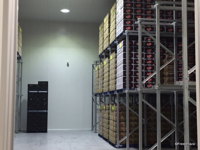 The storage cool rooms branch off the main packing area and are organised according to the type of produce and whether it is waiting to be packed or ready to be picked up by a customer.