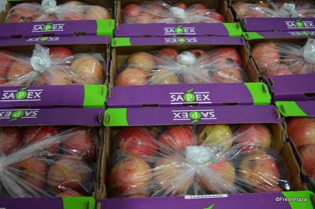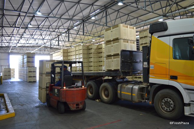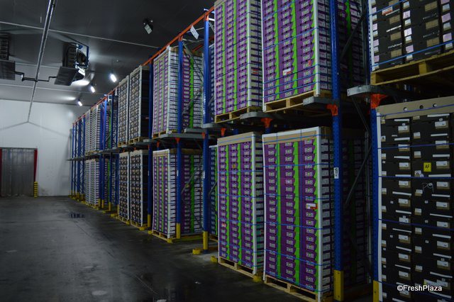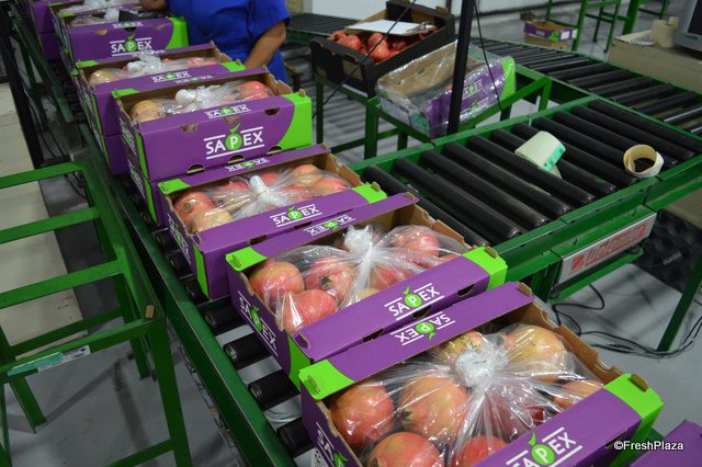Pomegranates ready to go to Egypt where the arils will be removed sold in cups for Marks and Spencer.
