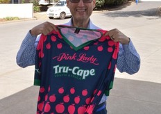 Brian Berkman shows off his Pink Lady cycling shirt.