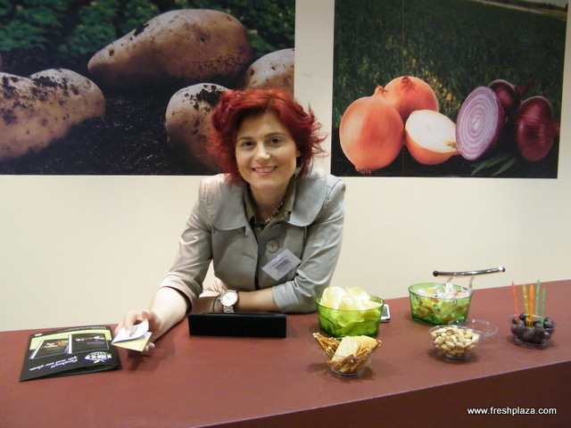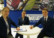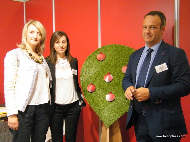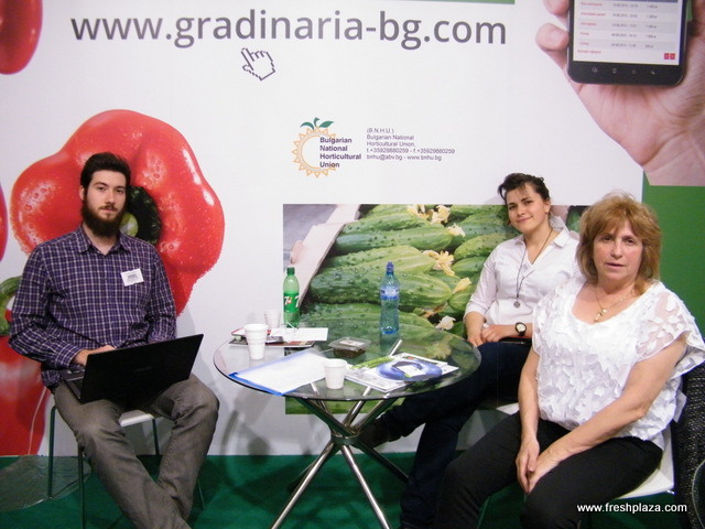 From the Bulgarian stand: Marketing Specialist Ivan Georgiev of Sunday Food Ltd. with Simona (m) and Board Member Mariana Miltenova of Bulgarian National Horticultural Union.