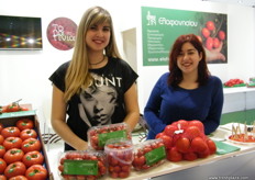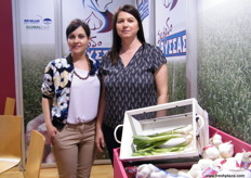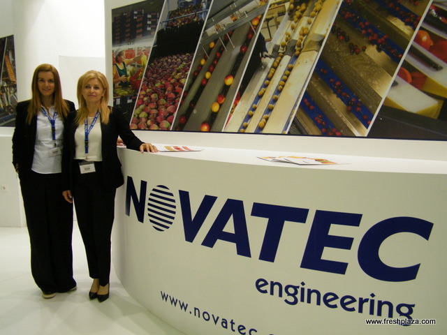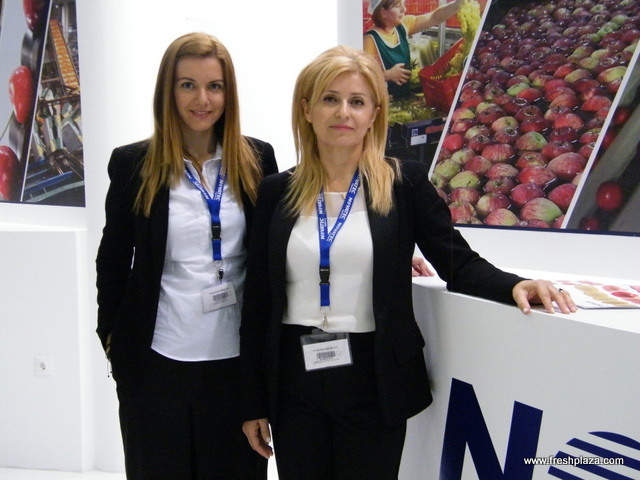 Erofili Nomikou (l) with Vice Chairman of Novatec Evangelia Panagopoulou; a specialized and innovative company for post harvest solutions, with almost 20 years of adeptness in research, design, manufacture, supply and maintenance of equipment and machinery for sorting, grading and packaging of fresh fruits and vegetables.