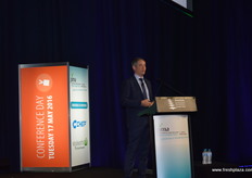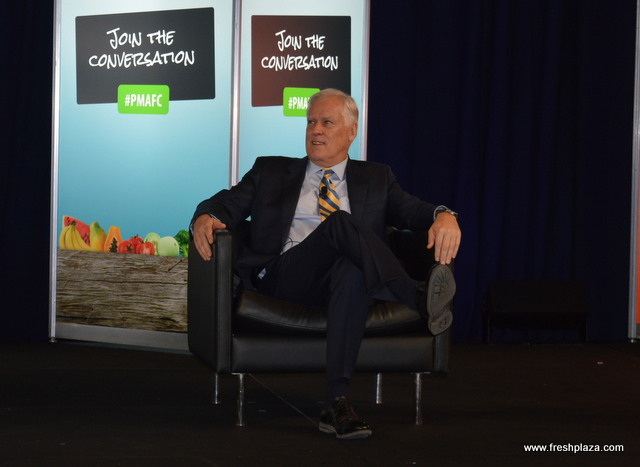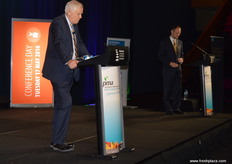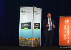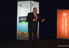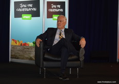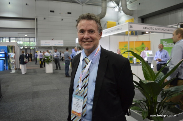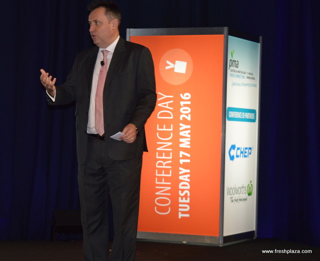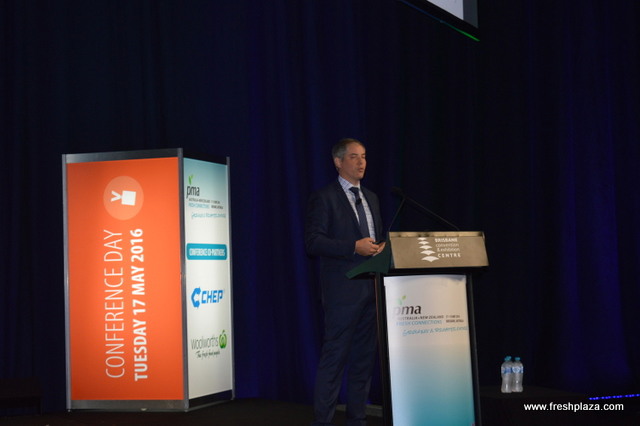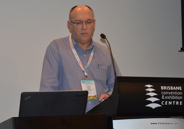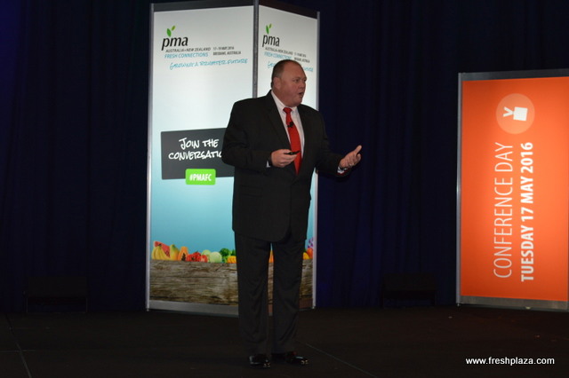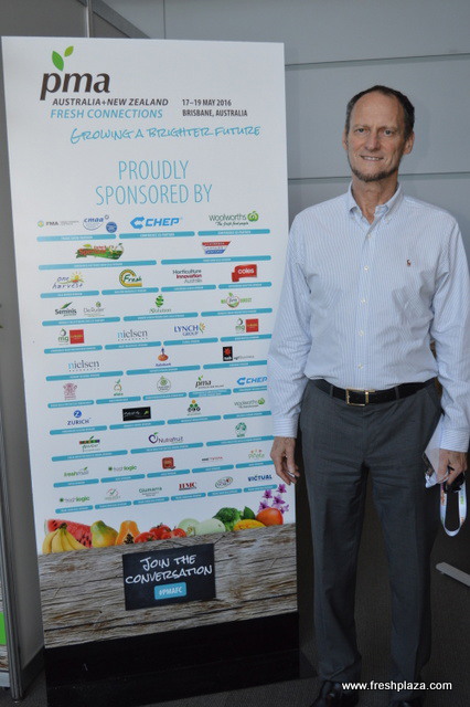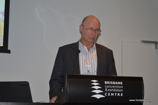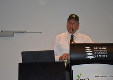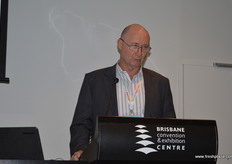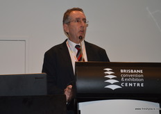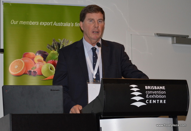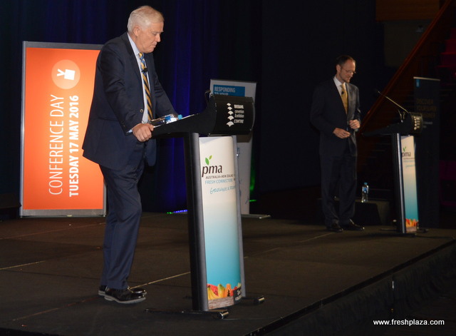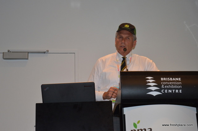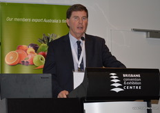 John Dollisson Apple and Pear Australia took off his suit jacket and put on his cap to speak from a grower's point of view.