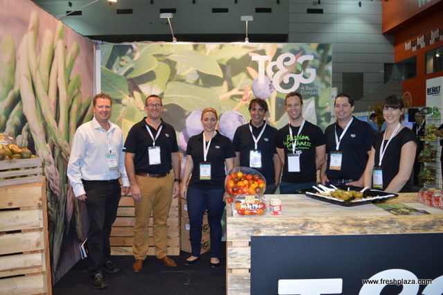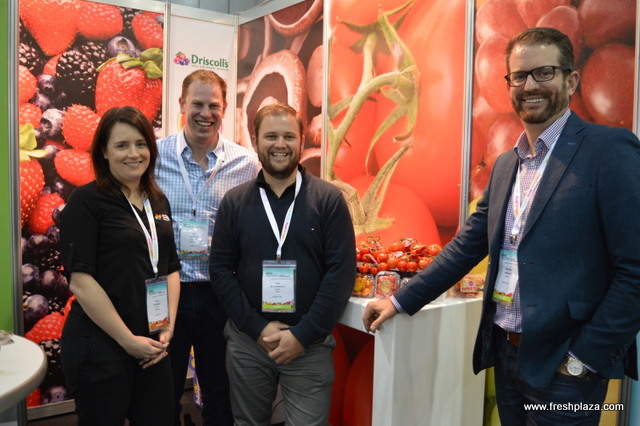 Kylie McKnight, Ben franklin, Paul Butterworth and Micheal Engelman at the Costa stand. The tomatoes are from Guyra in northern NSW and are sold under the Blush brand.