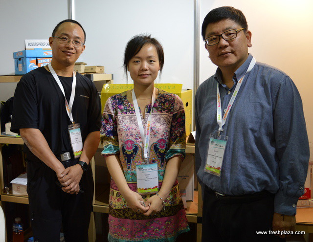 Johnson Xia, Wendy Wu and Roger Hu at Shanghai Jinxing Packing, the company manufactures packing materials in China.