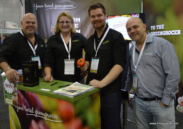 Heath McInerney, Joan MacDougal, Kirill Levitan and Carlo Trimbali at the Your Local Greengrocer stand.