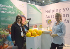 Rachel Palumbo and Danielle Butler from Monsanto with anew melon - the Orange Candy, a yellow melon with orange flesh.