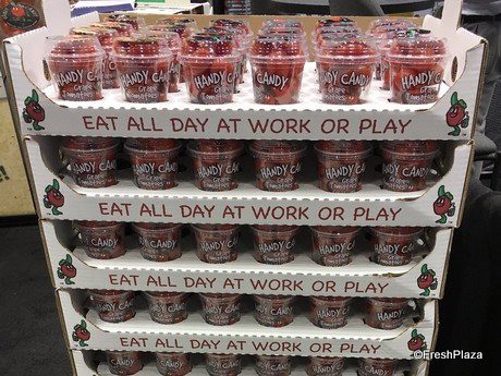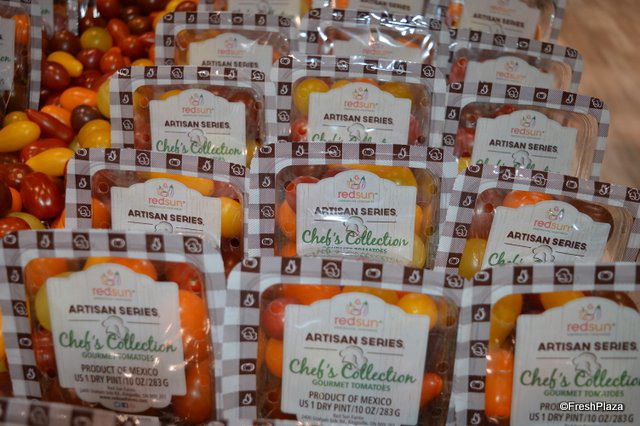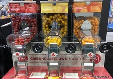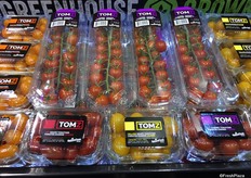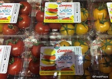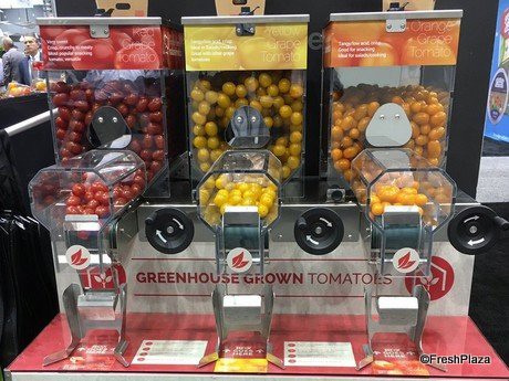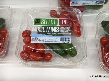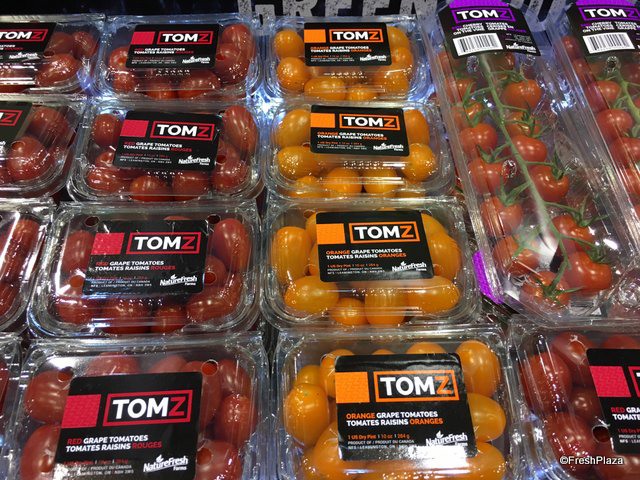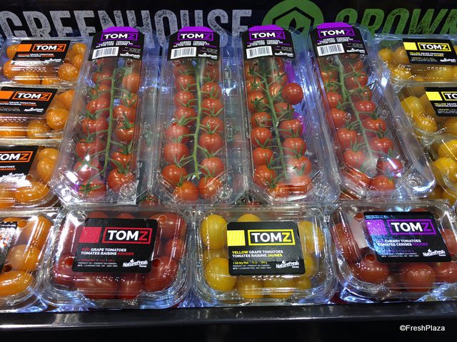 Grape, cherry, cocktail and medley tomatoes grouped together in Nature Fresh' new premium snacking product.