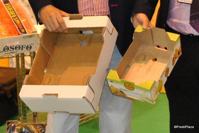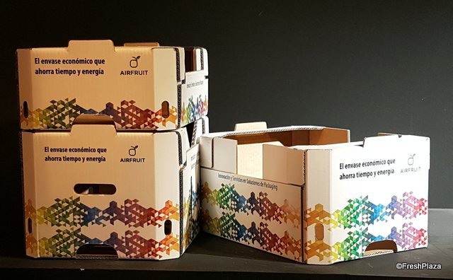Hinojosa Packaging with the new packaging called Airfruit. New in the market since january 2016. It's a new tray authorized for the agricultural sector, with a new structural design of form octogonal favors the air traffic between the boxes. It's recuding the time of colling in cold-storage rooms and therefore saving in costs again.